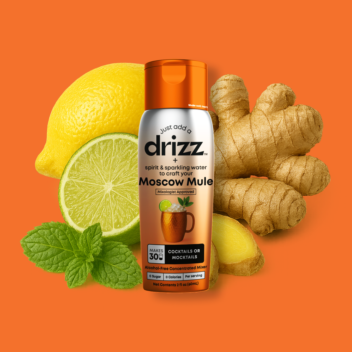 Bold ginger, fresh lime—no ginger beer needed. Drizz Moscow Mule Drops are a sugar-free mixer that makes bar-quality mules in seconds. Just add vodka & soda or sparkling water for a crisp mocktail.